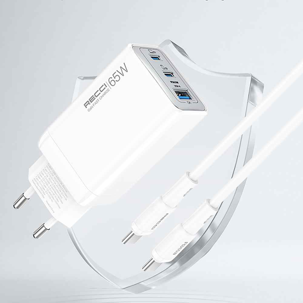 Recci RC123E Type-C PD GaN Teknolojili Mini Hızlı Şarj Seti 65W 1M