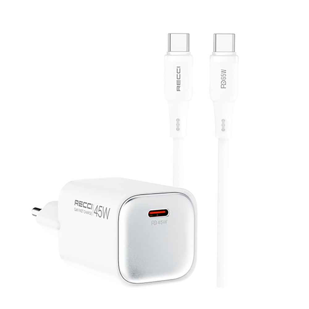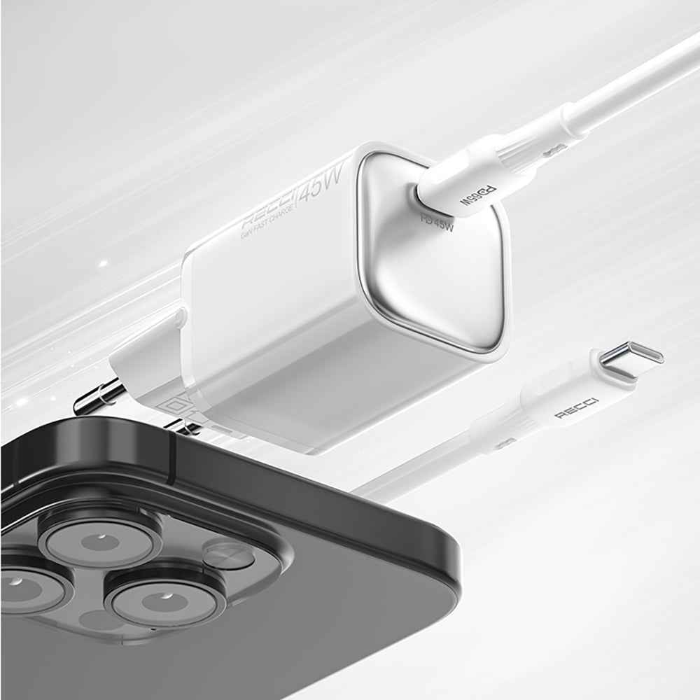 Recci RC132E Type-C PD GaN Teknolojili Mini Hızlı Şarj Seti 45W 1M