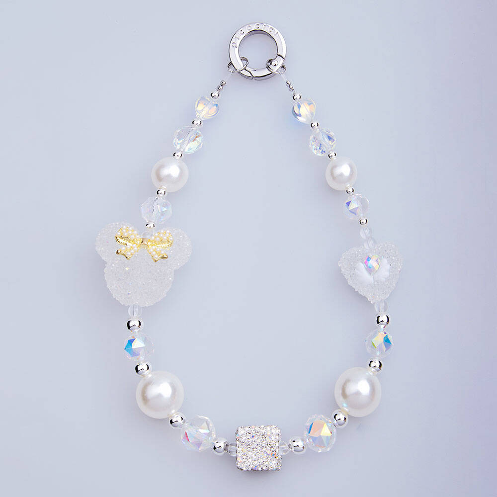 Picocici İnci Taş Tasarımlı Fiyonklu Minnie Mouse Telefon Bilek Askı İpi