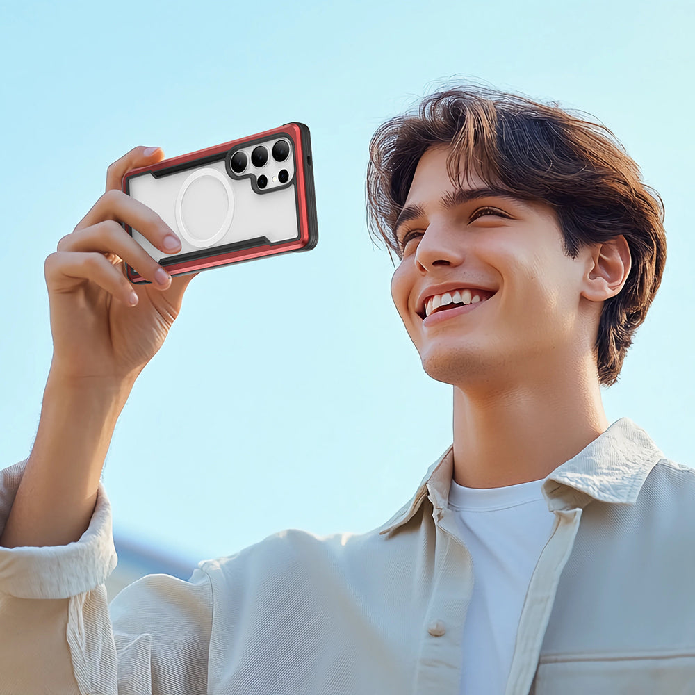 Galaxy S25 Ultra Kılıf M-safe Şarj Özellikli Airbagli Raptic Shield Serisi Şeffaf Arka Yüzey Kapak - Kırmızı is backordered and will ship as soon as it is back in stock.