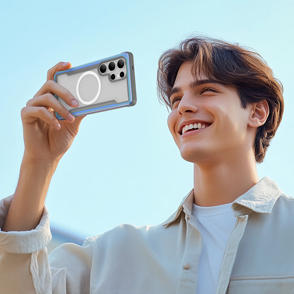 Galaxy S25 Ultra Kılıf M-safe Şarj Özellikli Airbagli Raptic Shield Serisi Şeffaf Arka Yüzey Kapak