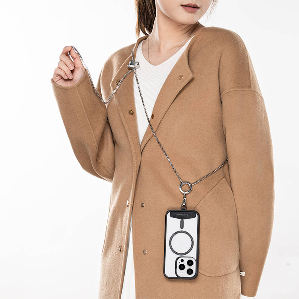 Casebang'in ayarlanabilir çapraz vücut telefon askı zinciri, günlük kullanım için ideal pratiklik ve şıklığı sunar. Zincirin özenle tasarlanmış yapısı, rahat bir taşıma deneyimi sağlarken, kıyafetlerinizle mükemmel bir uyum içinde olacak modern bir görünüm sunar.