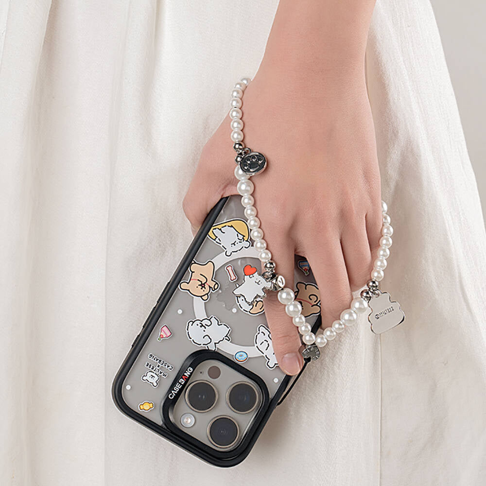 Casebang Maltese bilek askı ipi, günlük telefon kullanımınıza lüks bir dokunuş katıyor. İnci detaylarıyla zarif bir görünüm sunan bu aksesuar, hem günlük kullanımınızı kolaylaştırıyor hem de kıyafetlerinizle mükemmel bir uyum sağlıyor.