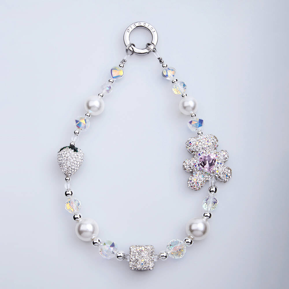 Picocici Elmas Taşlı Çilek ve Elmas Taşlı Ayı Telefon Bilek Askı İpi