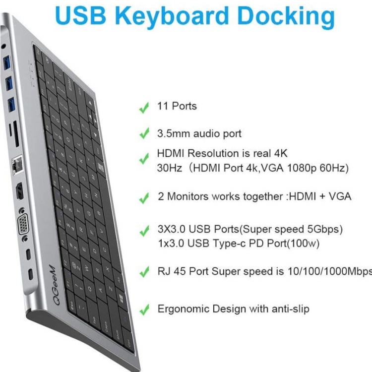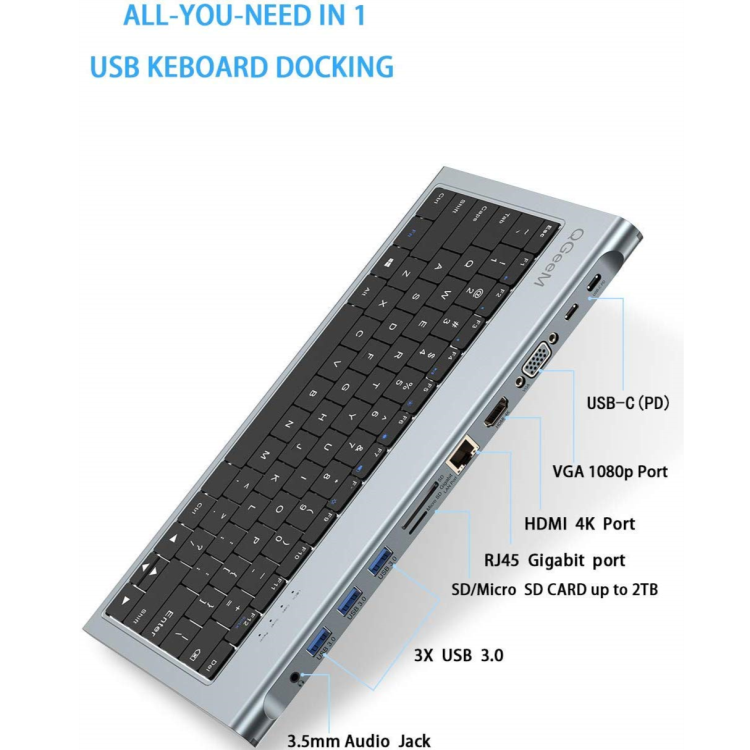 Qgeem QG-UH-11-2 Type-C Hub Klavye