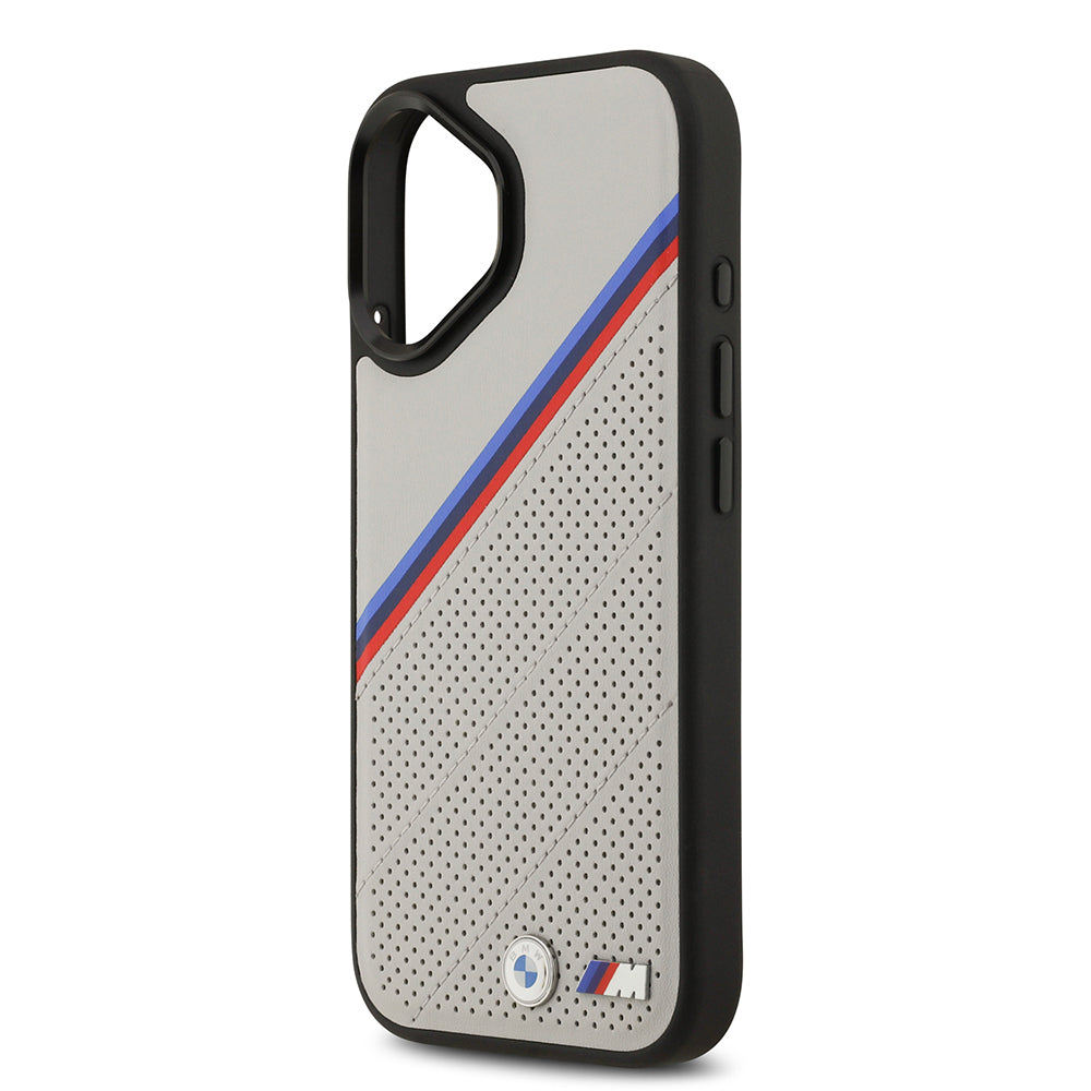 Apple iPhone 17 Kılıf BMW Orjinal Lisanslı M-safe Şarj Özellikli M Logolu Üç Şeritli Delikli Deri Kapak - Gri Ürün stokta yok ve tekrar stoklara girdiğinde gönderilecektir.