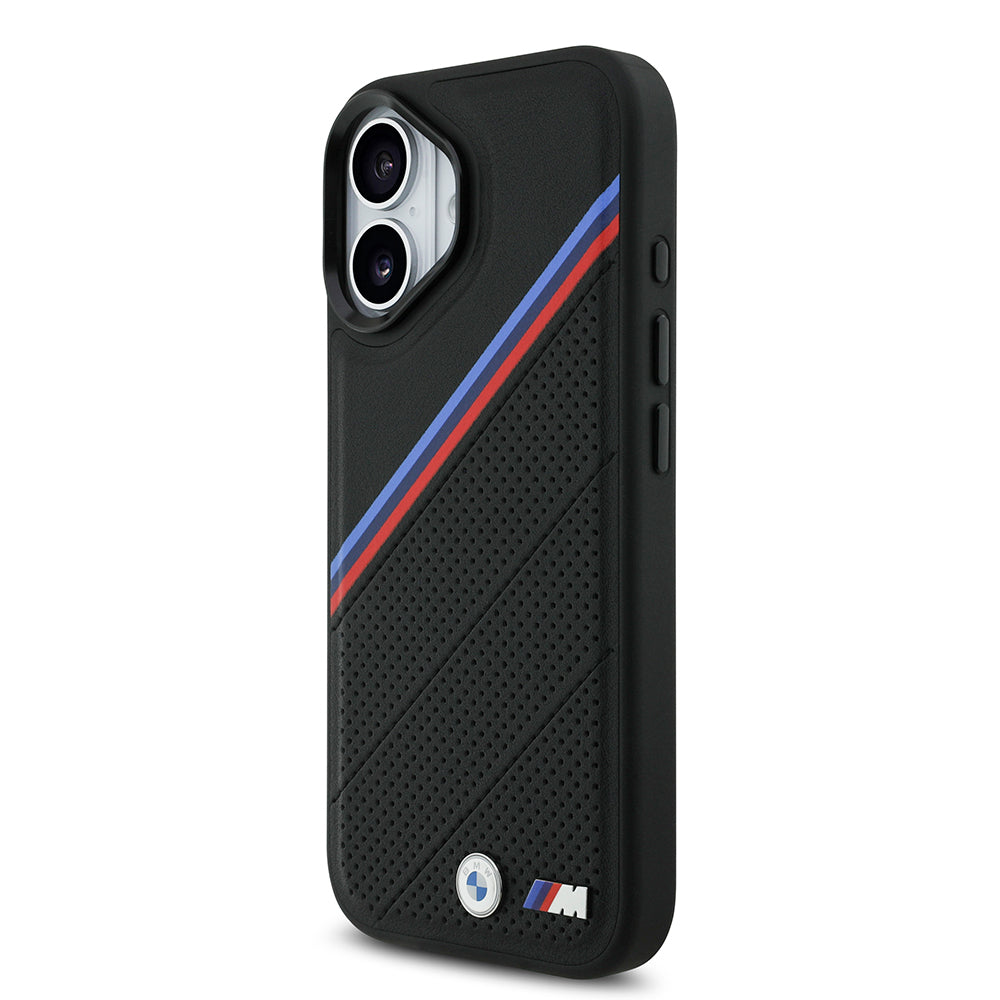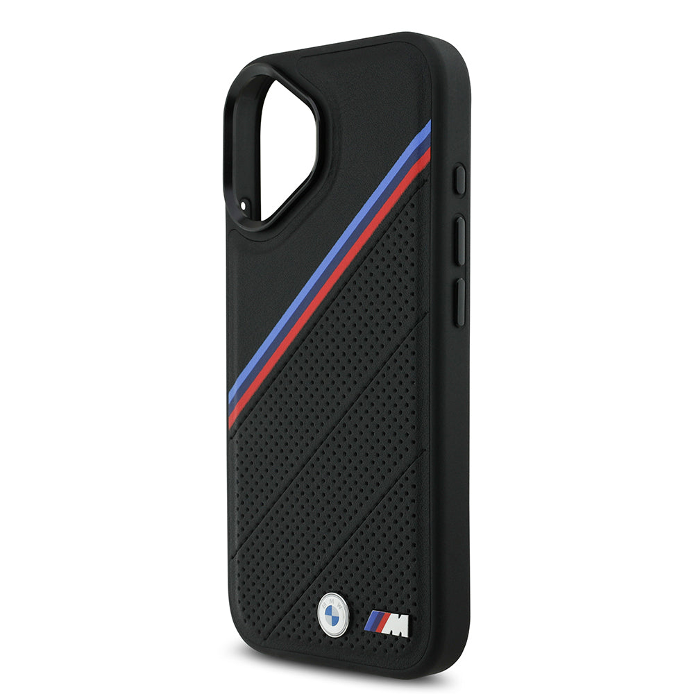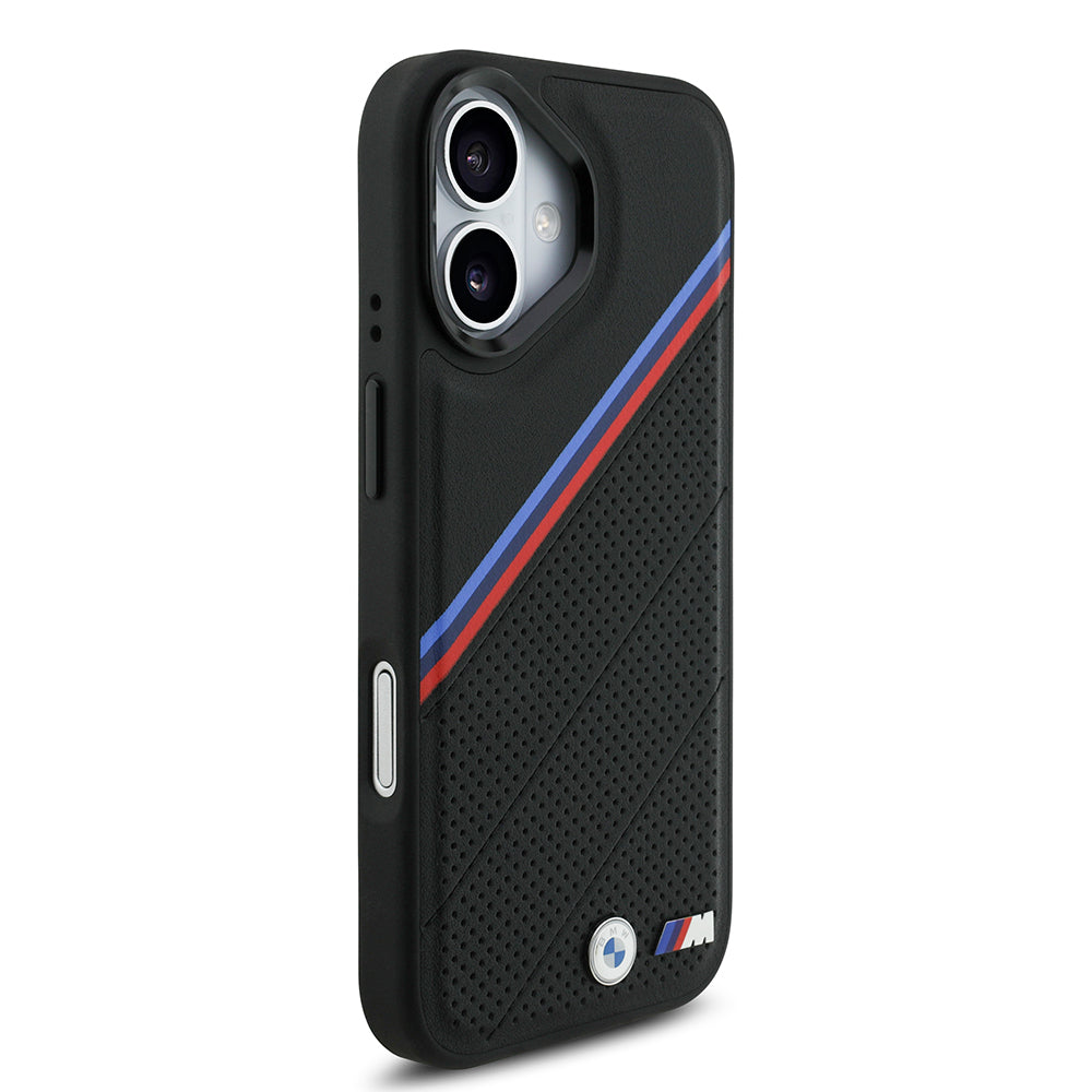 Apple iPhone 17 Kılıf BMW Orjinal Lisanslı M-safe Şarj Özellikli M Logolu Üç Şeritli Delikli Deri Kapak