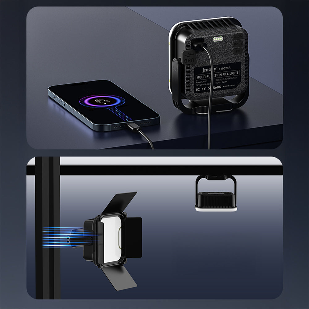 180° dönebilen yapısı sayesinde ışığı istediğiniz açıya yönlendirebilir, sahneye tam hakimiyet sağlayabilirsiniz. Type-C şarj girişiyle hızlı şarj olanağı sunarken, aynı zamanda 5V/1A çıkış portu sayesinde taşınabilir güç bankası olarak da kullanılabilir. Alt kısmındaki 1/4" vida yuvası ile tripod ve stand desteği sunar; bu sayede hem stüdyo çekimlerinde hem de kamp ortamlarında sabit bir kurulum sağlar.