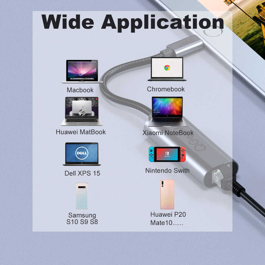 Qgeem QG-UA05 RJ45 to Type-C Süper Hızlı Ethernet Dönüştürücü Kablo 1000Mbps 11cm